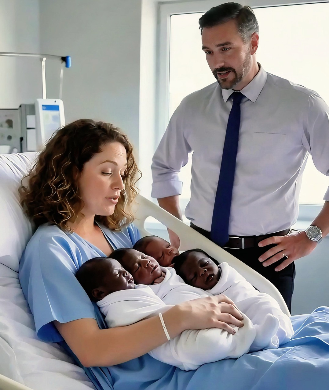The doctors later explained that genetics can hold unexpected surprises. Both parents carried rare recessive traits from distant ancestors. When combined, these genes resulted in their children having darker skin tones.